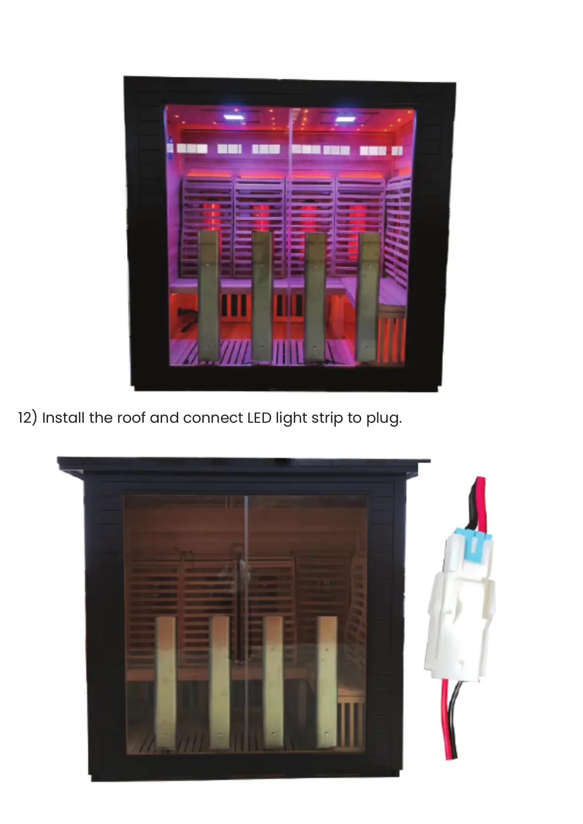12) Install the roof and connect LED light strip to plug.