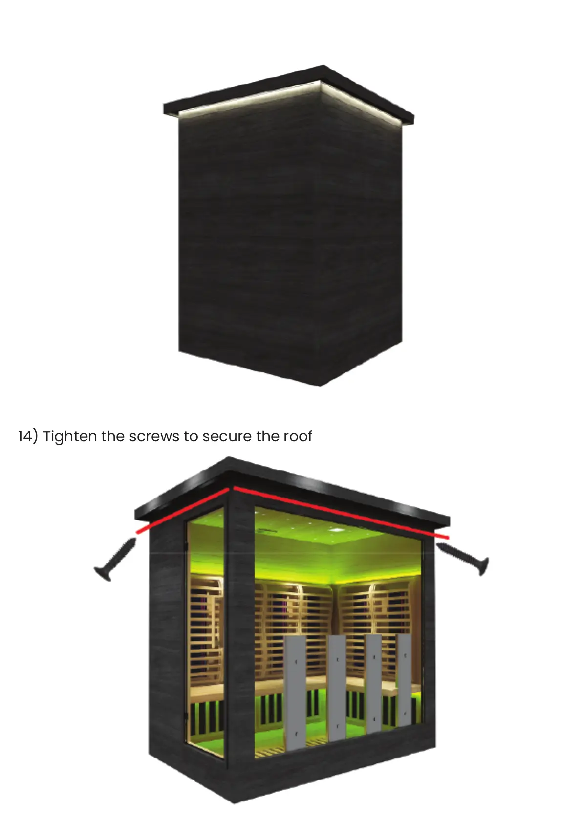 14) Tighten the screws to secure the roof