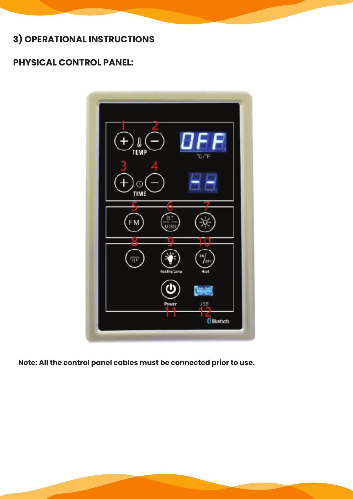 Note: All the control panel cables must be connected prior to use.