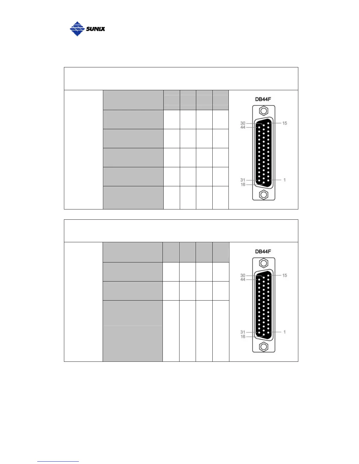 SUNIX DB44 Female 4 ports Serial Communication Boards Pin Assignment