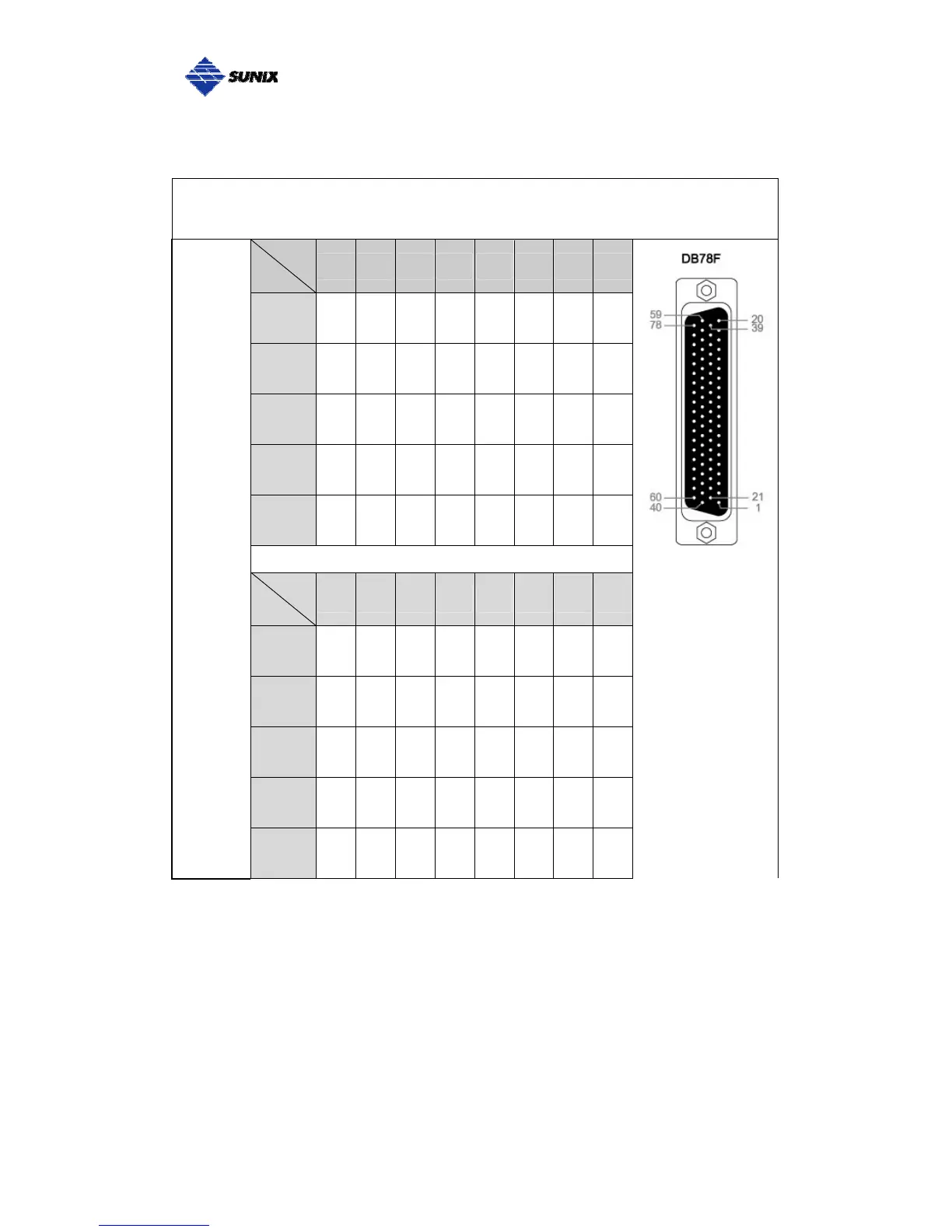 SUNIX DB78 Female 16 ports Serial Communication Boards Pin Assignment