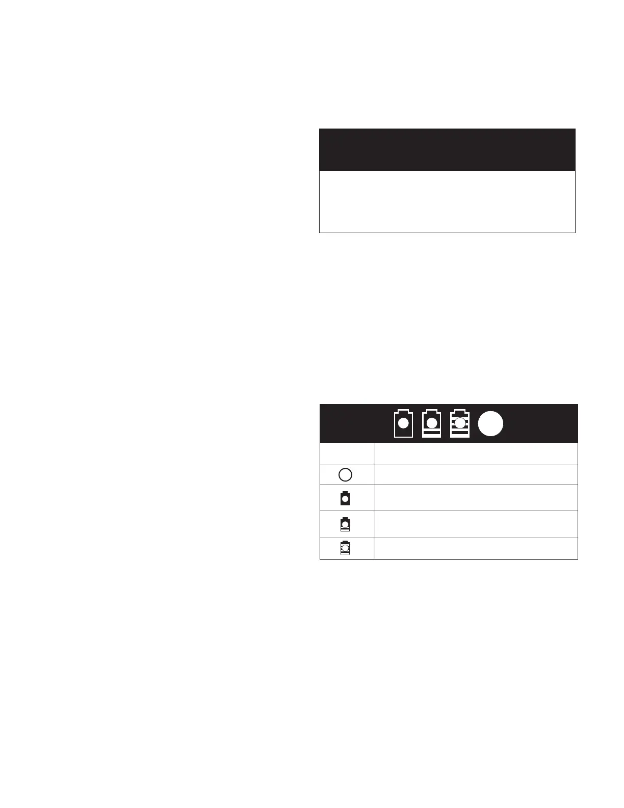 • All 3 level monitoring LEDs are lit: Battery charge level