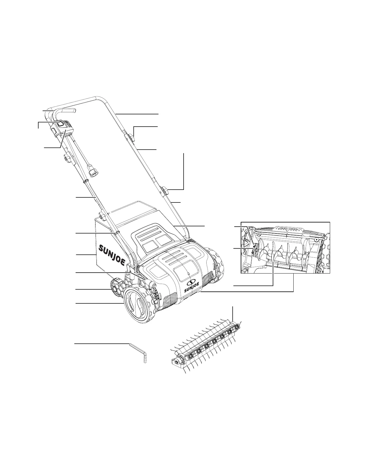 Read the owner’s manual and safety instructions carefully before operating the scarier + dethatcher. Compare the illustration