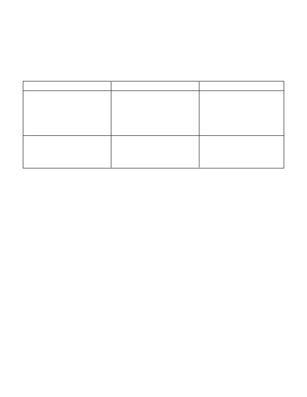 Troubleshooting Table