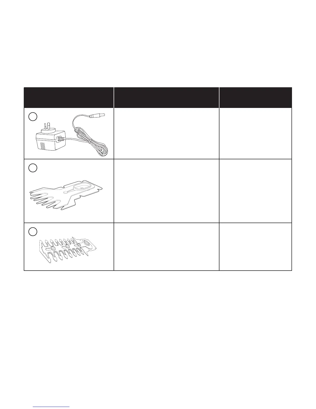 replacement parts or accessories that are not intended for use with this cordless grass shear + hedge trimmer. Contact