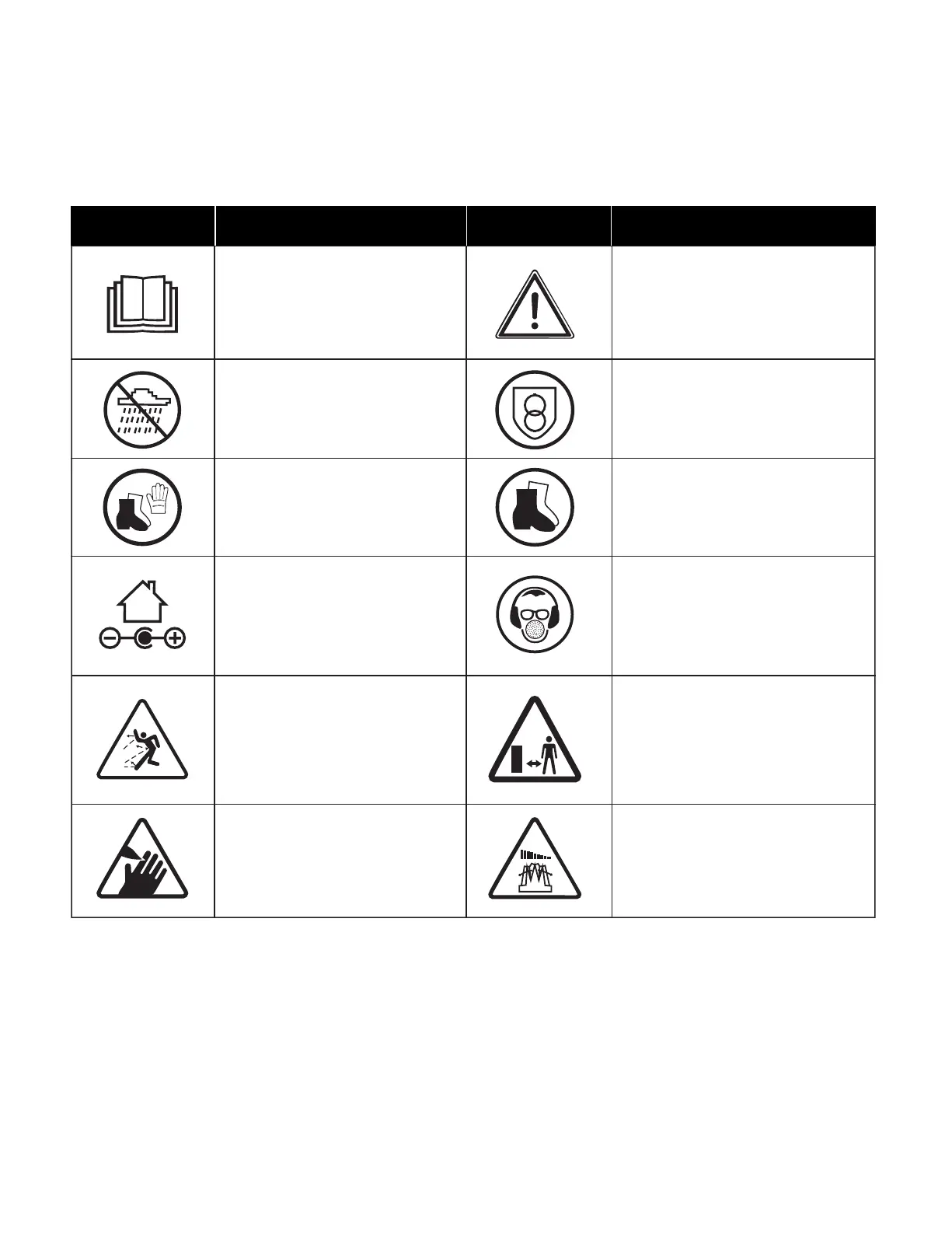 The following table depicts and describes safety symbols that may appear on this product. Read, understand and follow all