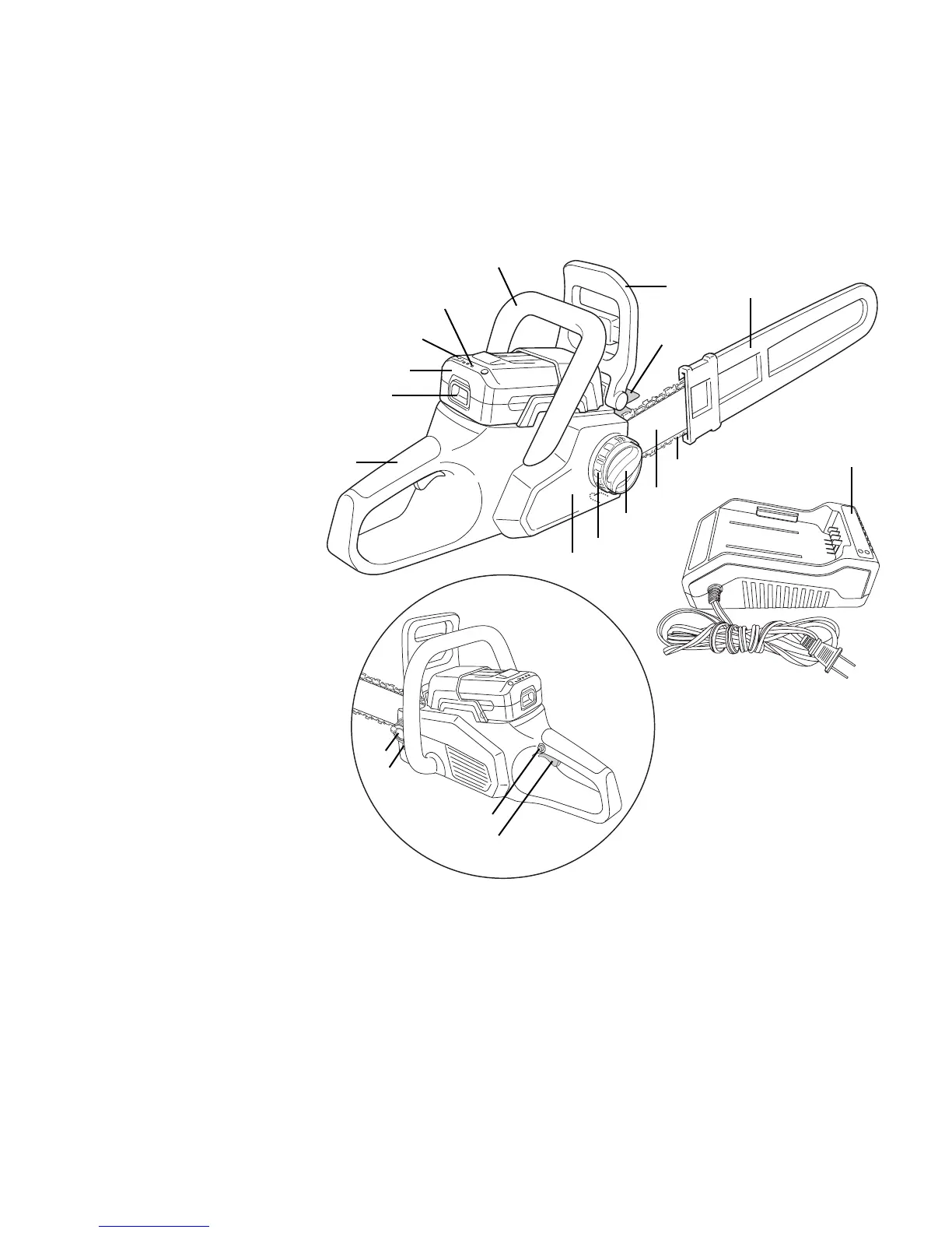 Read the owner’s manual and safety rules carefully before operating your cordless chain saw. Compare the illustration