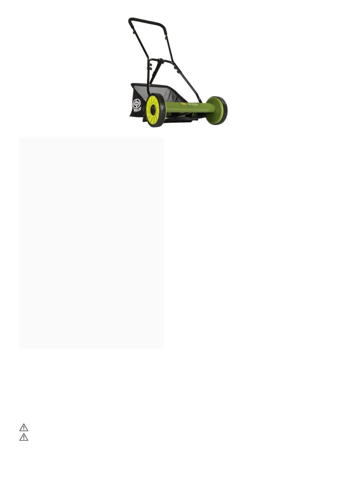 WARNING! Risk of dismemberment: keep hands and feet away from the rotating blades and the cutting area. Before using the reel mower,
