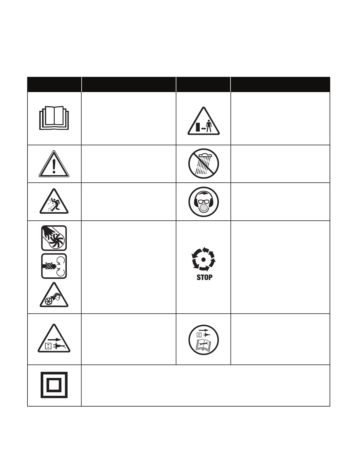 The following table depicts and describes safety symbols that may appear on this product. Read, understand, and follow all