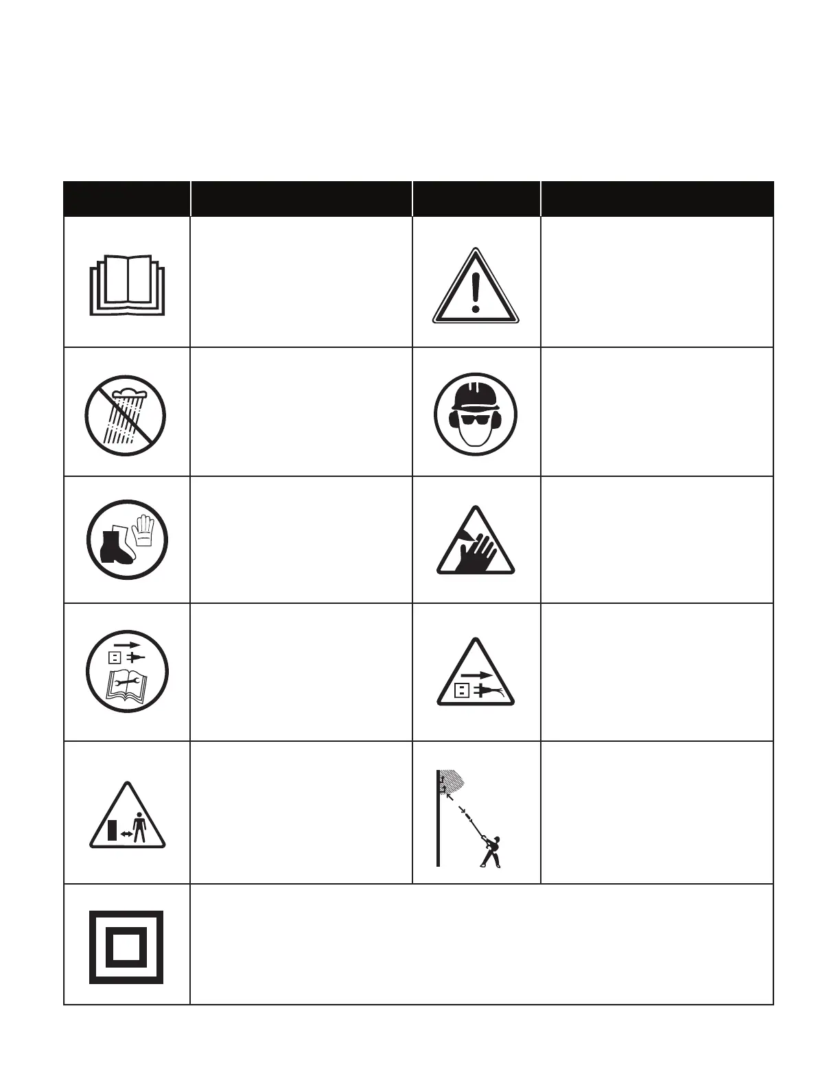 The following table depicts and describes safety symbols that may appear on this product. Read, understand, and follow all