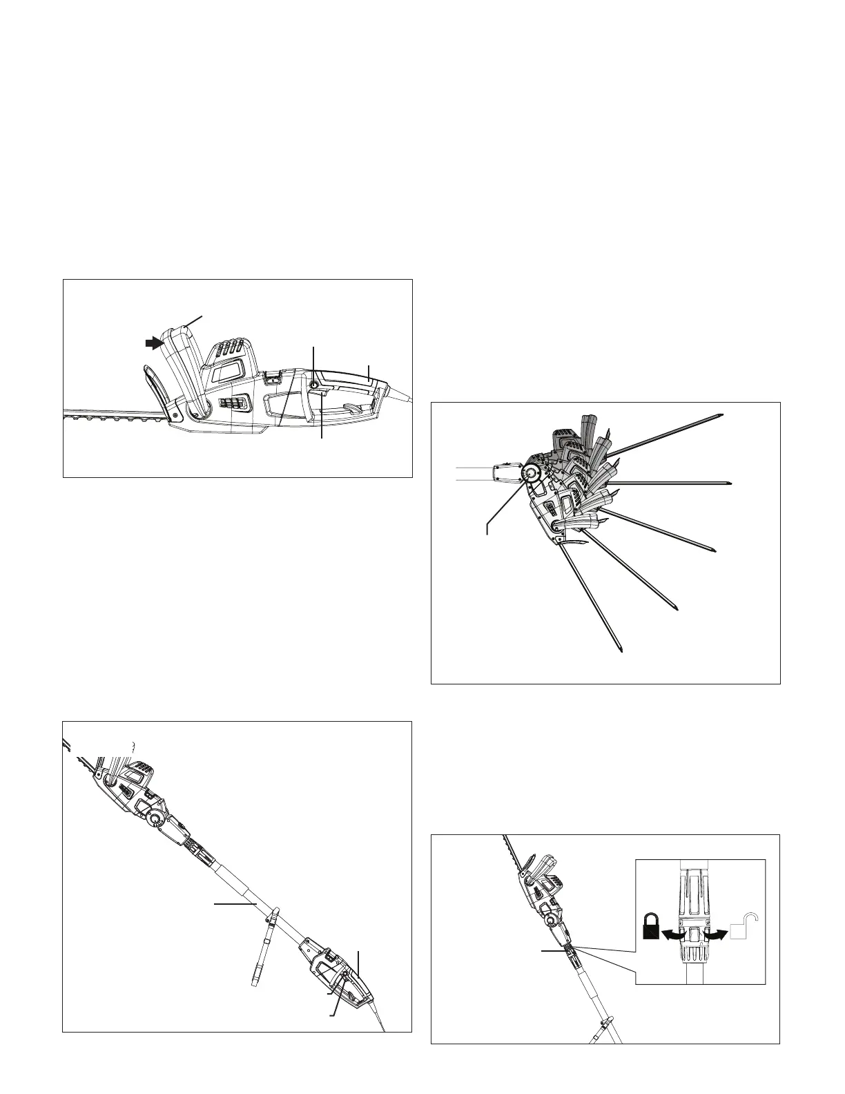 1. Hold the pole hedge trimmer rmly with both hands.