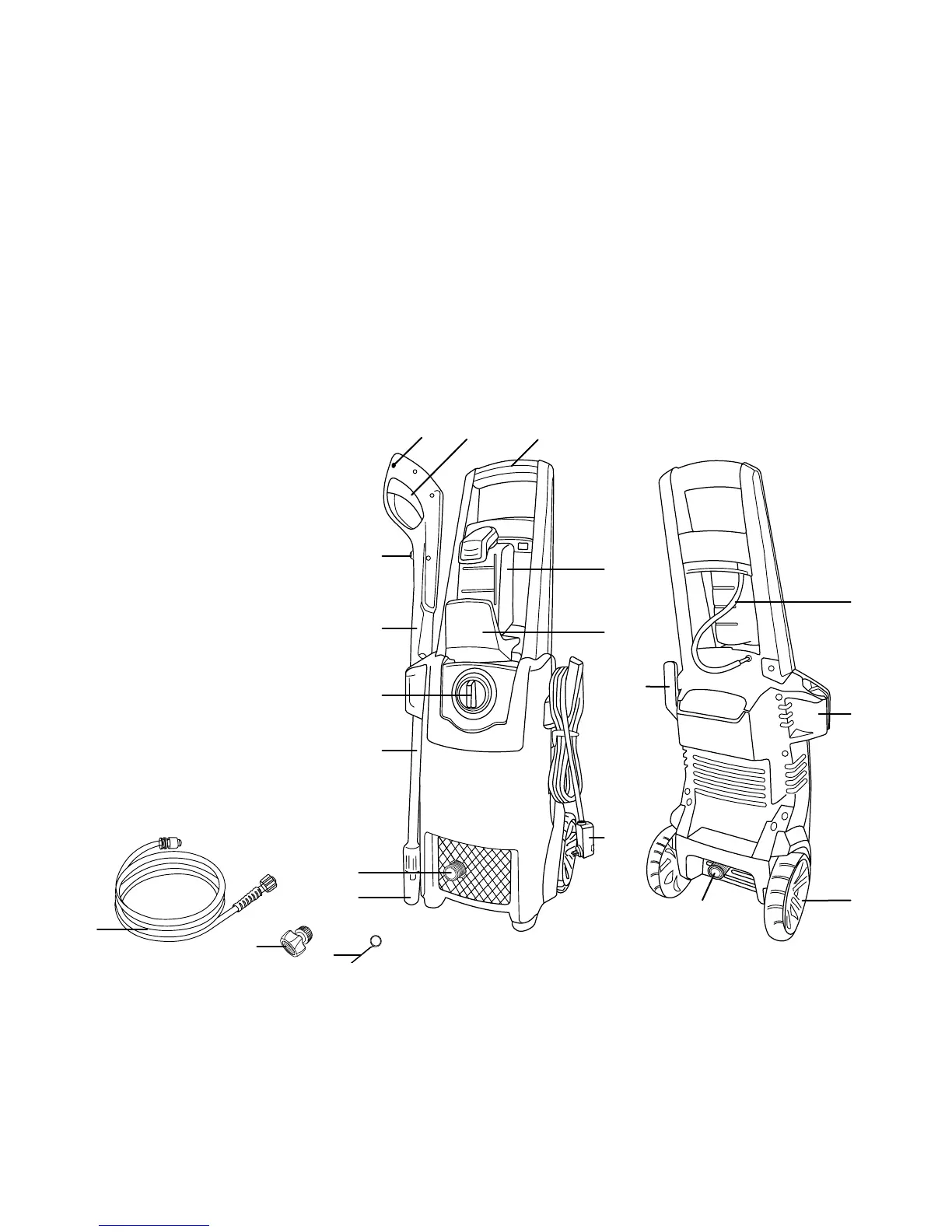 Read the owner’s manual and safety rules carefully before operating the pressure washer. Compare the illustration below to the