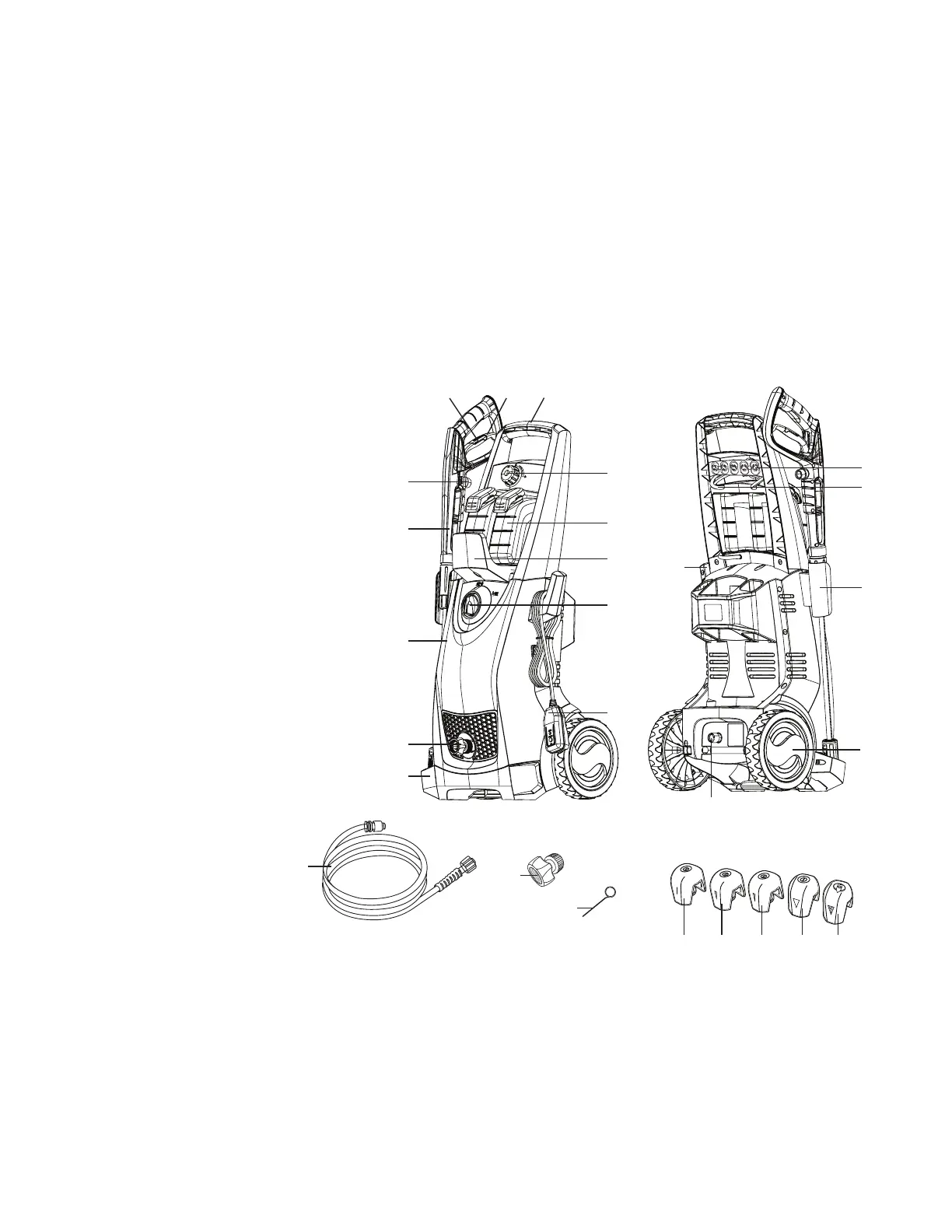 below to the electric pressure washer in order to familiarize yourself with the location of the various controls and adjustments.