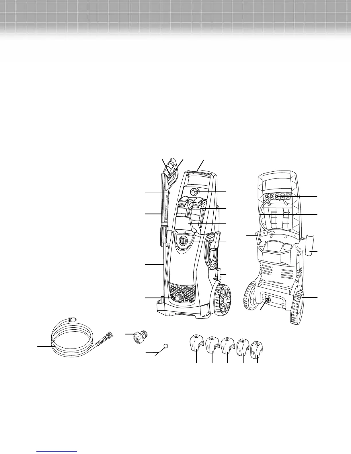 Compare the illustration below to the pressure washer in order to familiarize yourself with