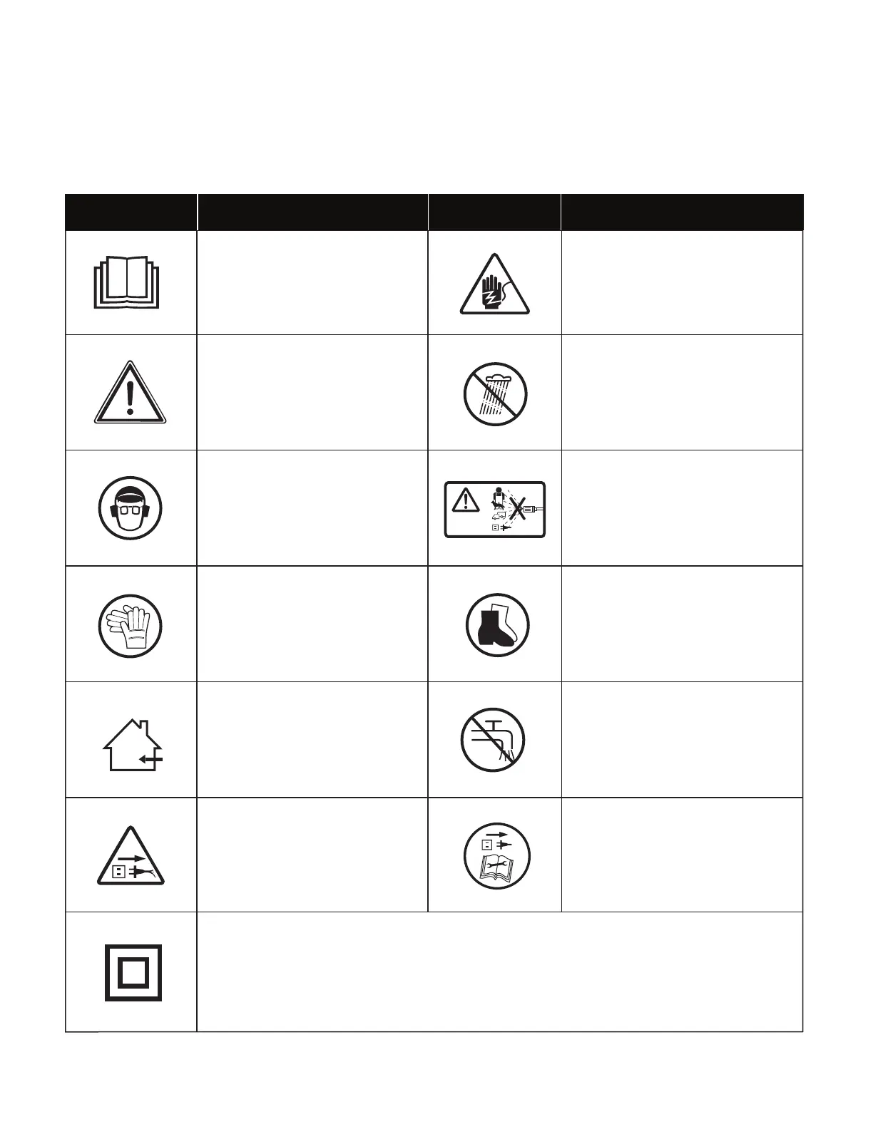 The following table depicts and describes safety symbols that may appear on this product. Read, understand, and follow all