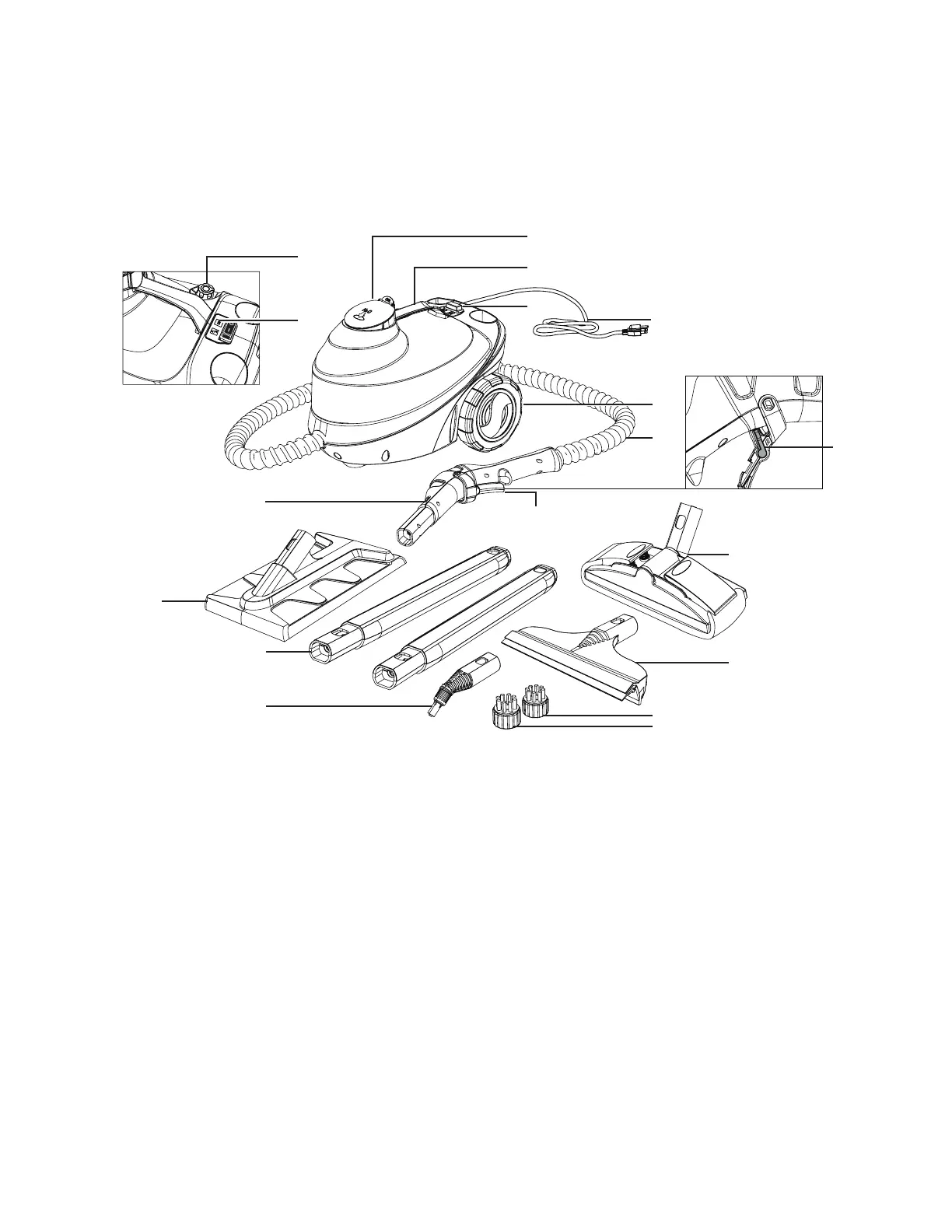 below to the electric steam cleaner in order to familiarize yourself with the location of the various controls and adjustments.