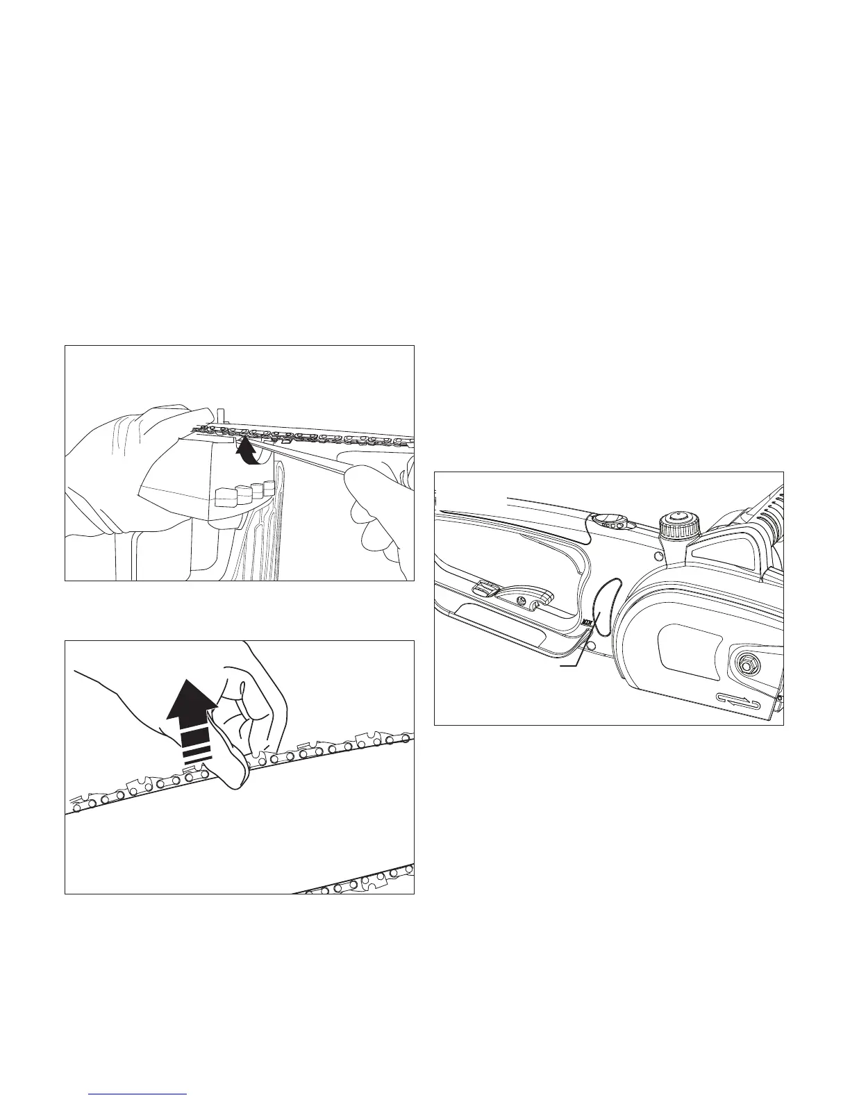 underside of the guide bar; the chain is snug, but it can be