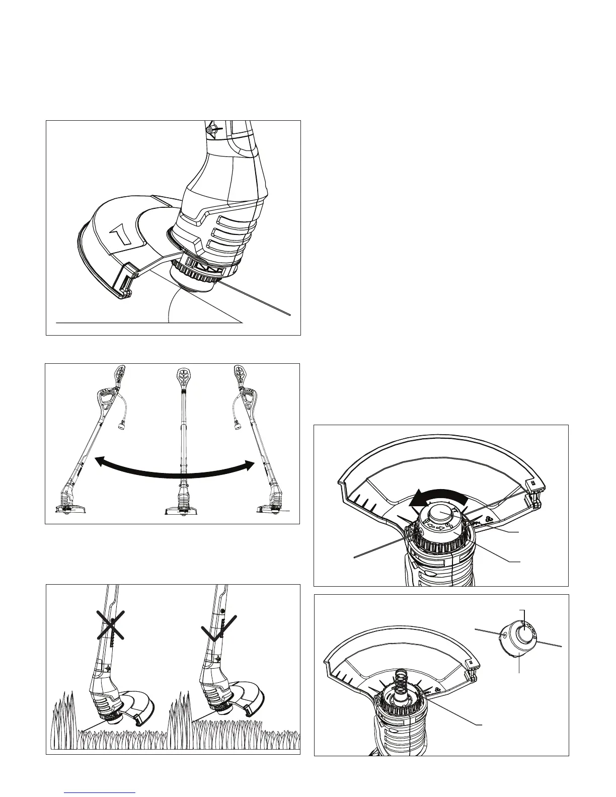 1. For best cutting performance, hold the trimmer at an angle