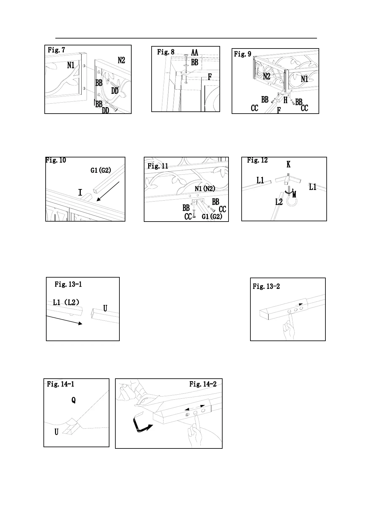 Fig.11: Attach middle beam (G1/G2) to Big top frame(N1/N2) by using bolt (CC) and washer (BB) Put big