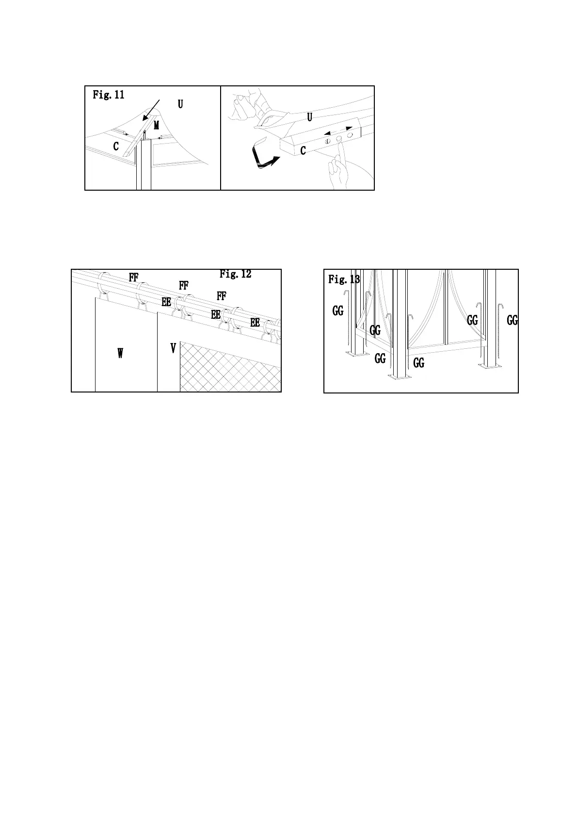 Fig.11:Spread large canopy(U) to large top frame, fix each corner to
