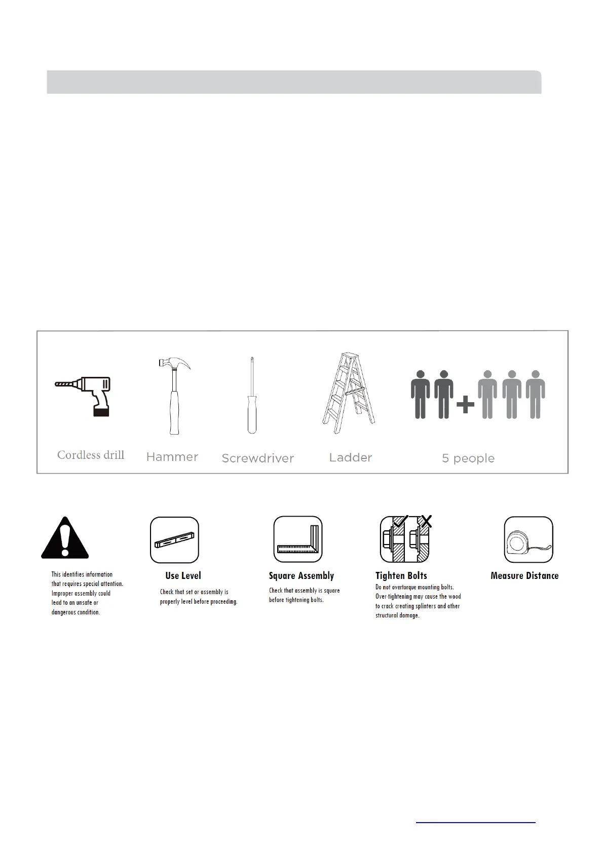 • Please read and understand this manual before any assembly. Before beginning assembly of