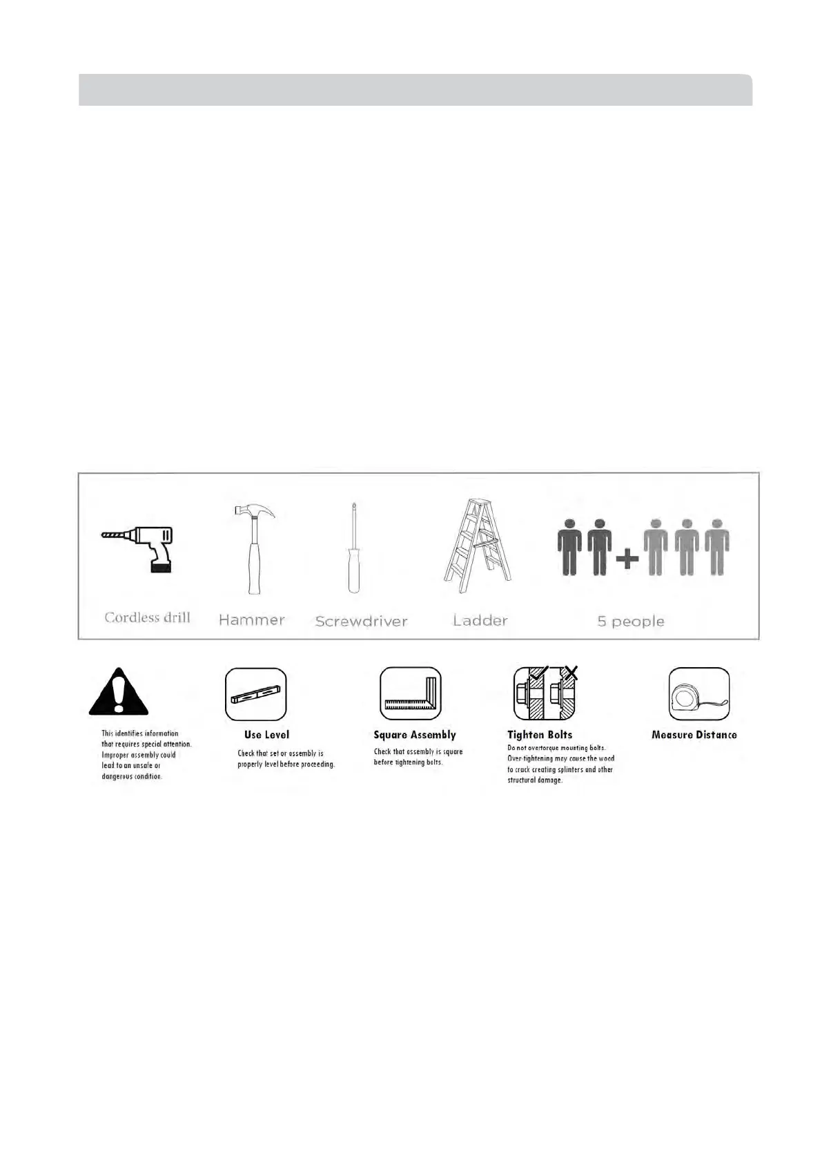 assembly of product, make sure all parts are present. Compare parts with packaging