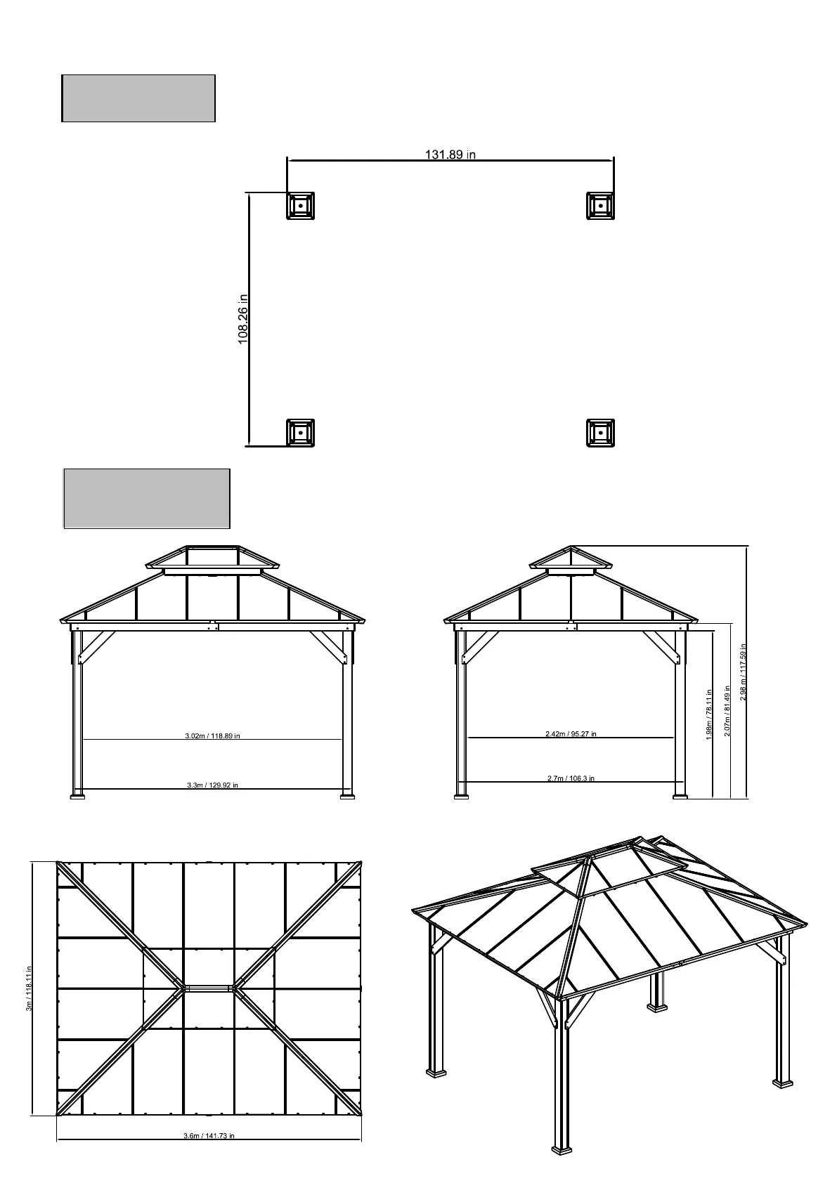 Sunjoy A102032601 - Installation Diagrams; Product Size and Layout Drawings