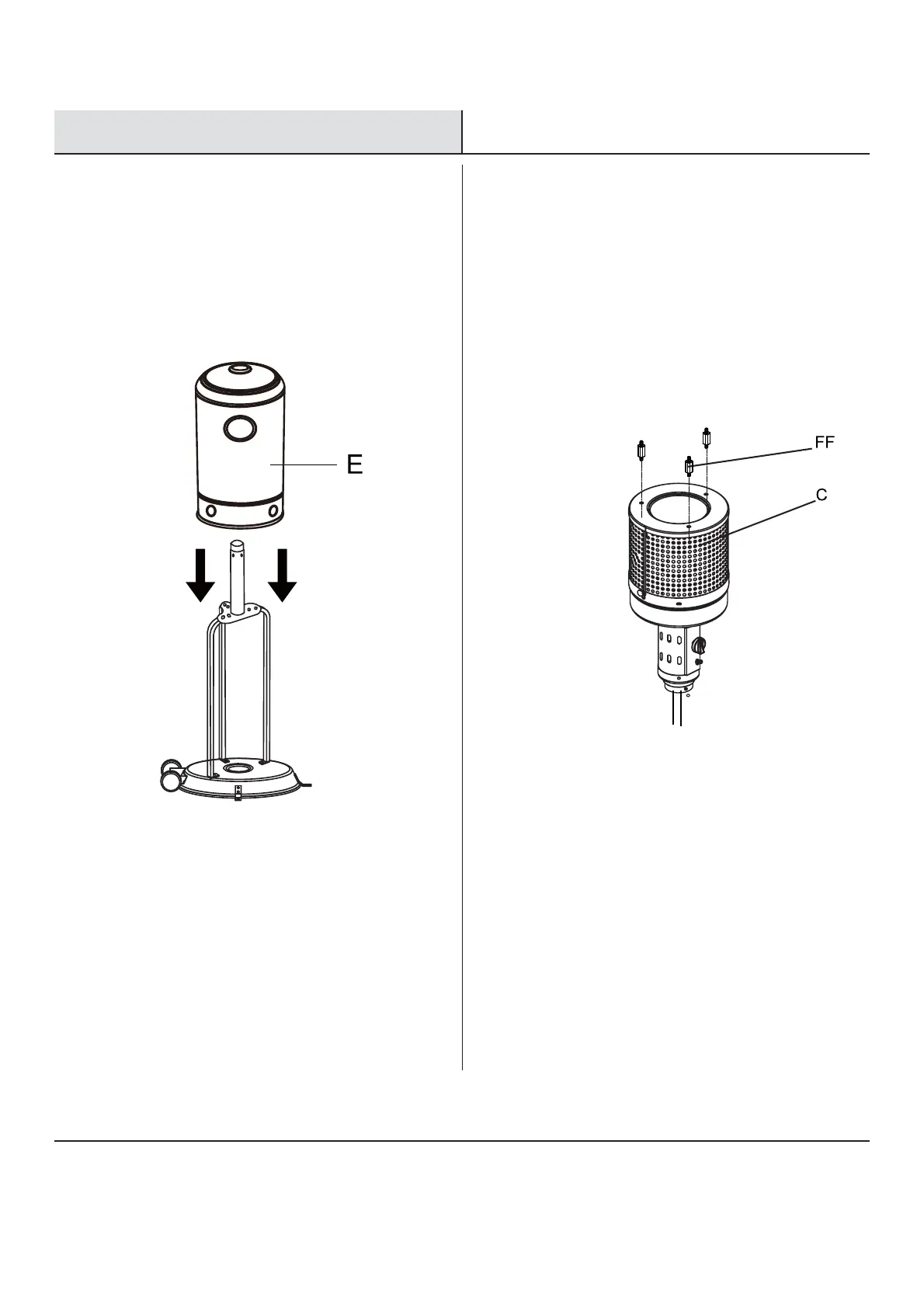 Place the tank housing (E) on top of the assembly. Screw the threaded end of the reflector studs (FF) into