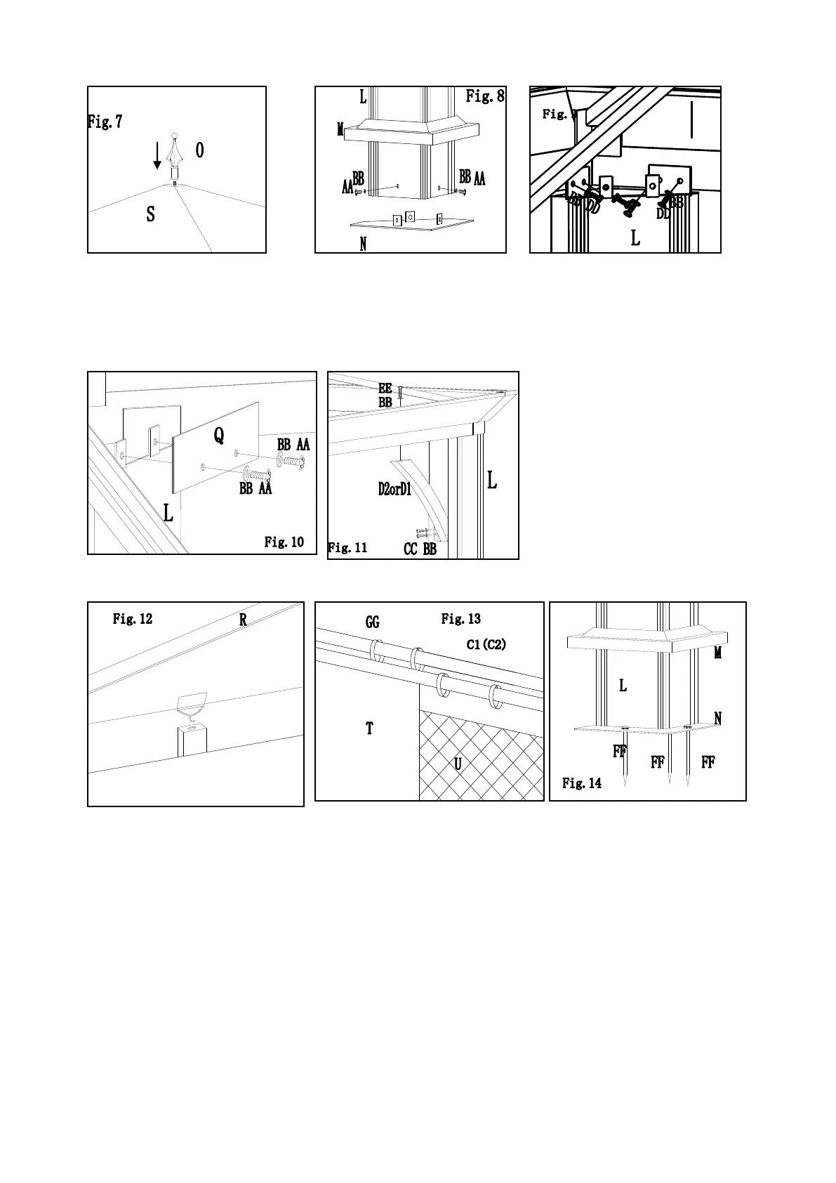Fig.14: Lift Base (M) and fix the gazebo on the ground with Stake (FF).