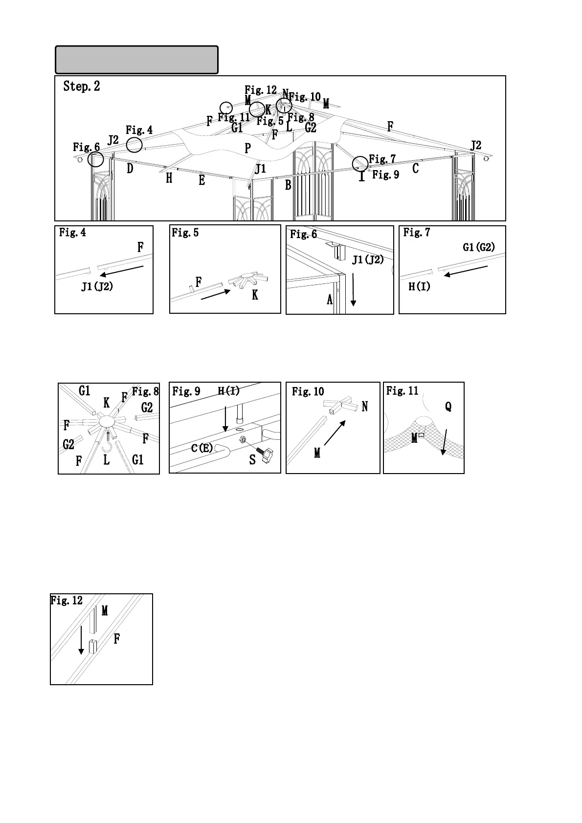 Fig.8: Insert the Long Middle Beam (G1) and Short Middle Beam (G2) into the big Roof Connector (K),