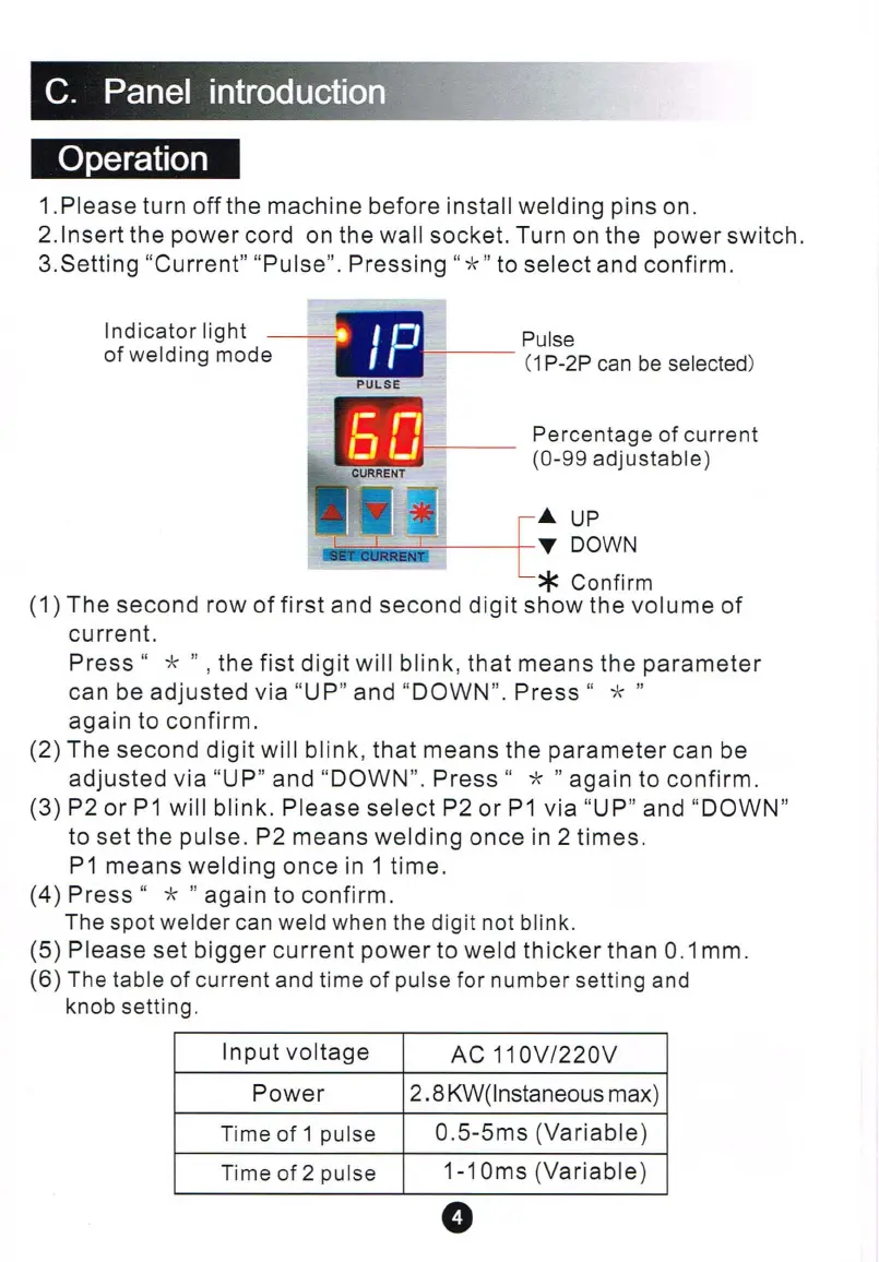 Sunkko 737G - Panel Operation and Controls; Operating the Welder