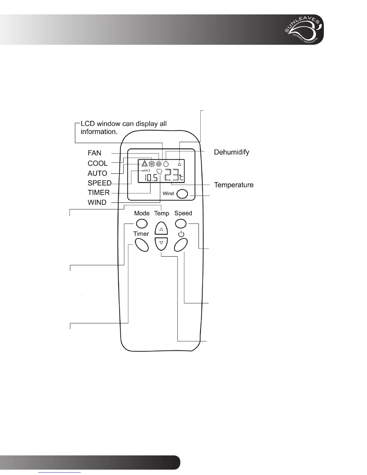 • LCD window can display AUTO, COOL, FAN, DEHUMIDIFY, SPEED, TEMP etc.