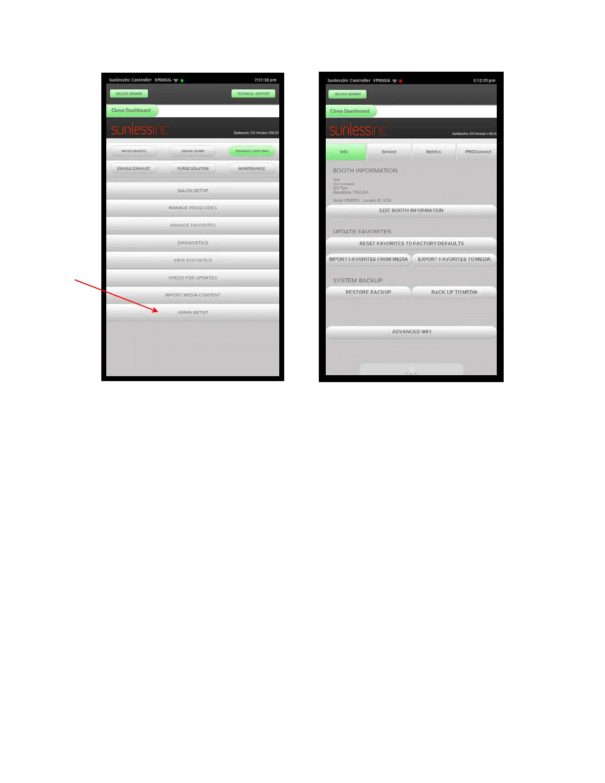 booth manually, enabling/disabling the interior lighting, checking for updates,