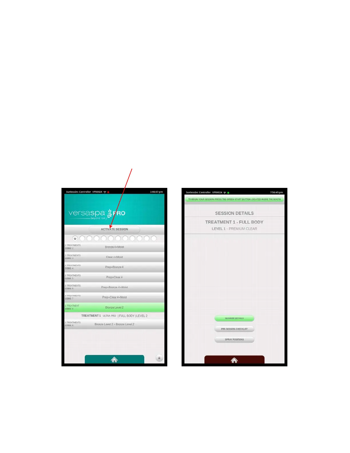 Also on the touchscreen at this time are options for the user to view the Session Details,