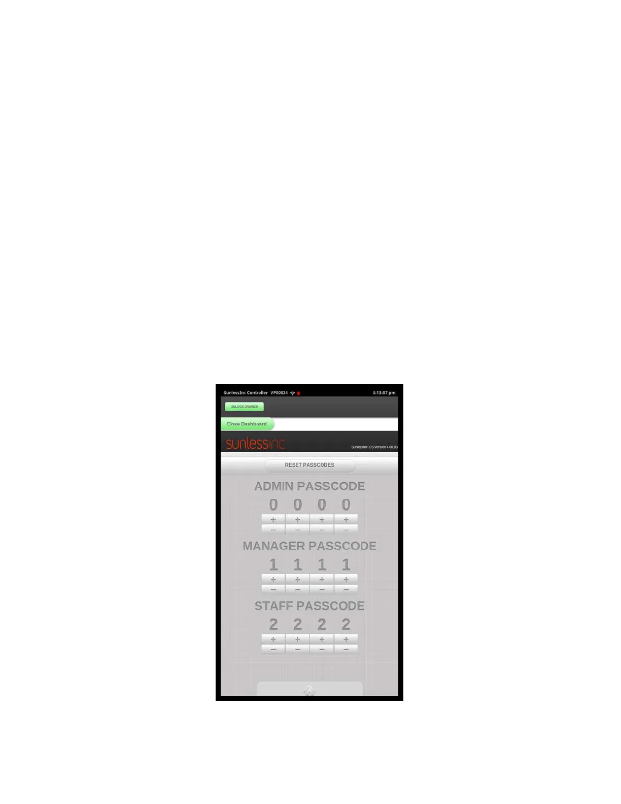 2. Manager: All functions of the Admin except Admin Setup, Manage Passcodes,