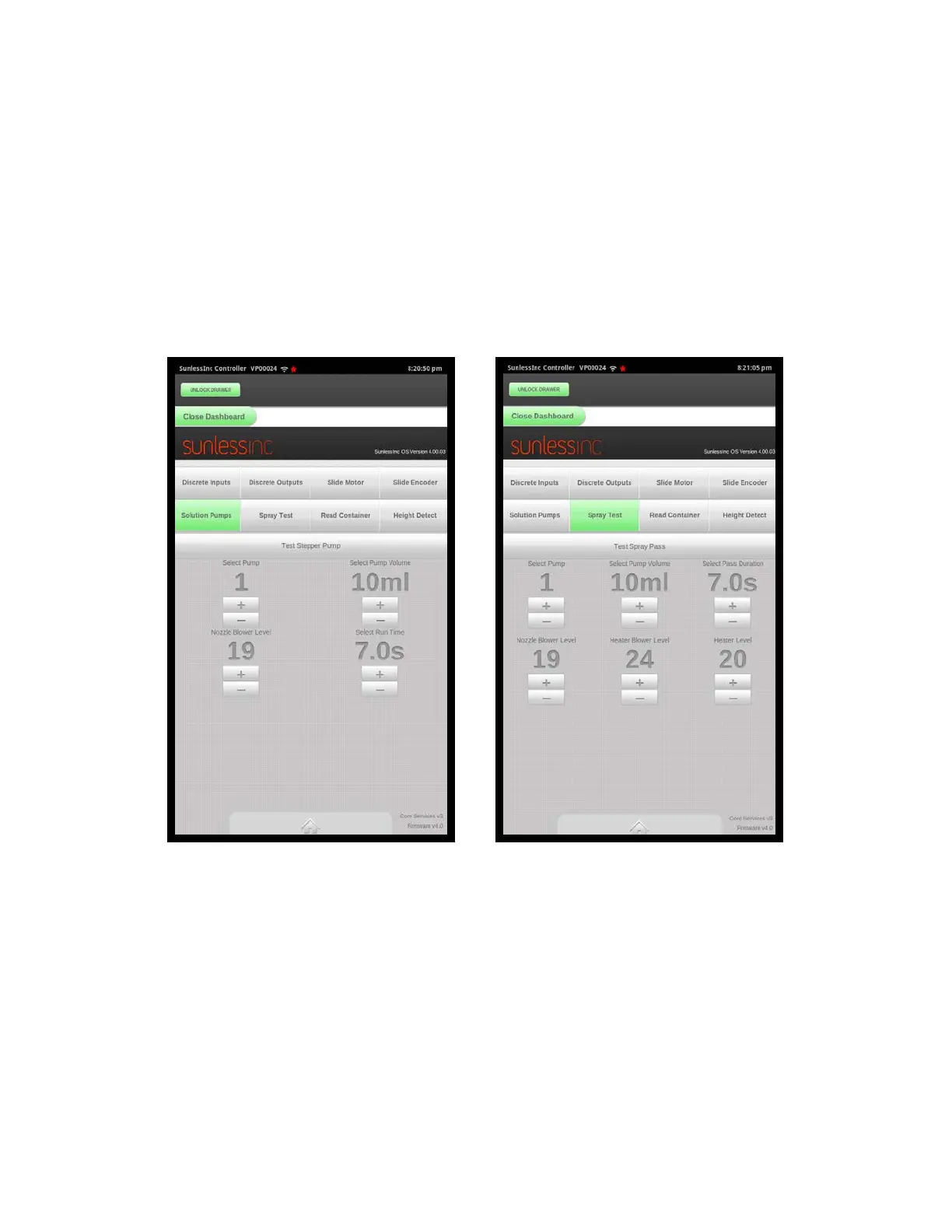 Solution Pumps: Allows you to test the function any of the four solution pumps. After