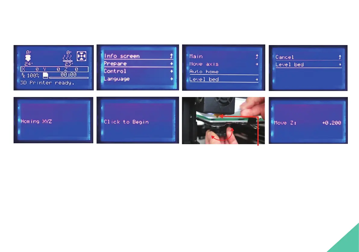 Step1:Menu → Prepare → Level bed → Level bed → Click to begin.