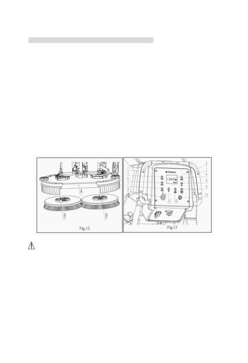 from the center position of the rotating shaft), and then press the brush button (12) on the control