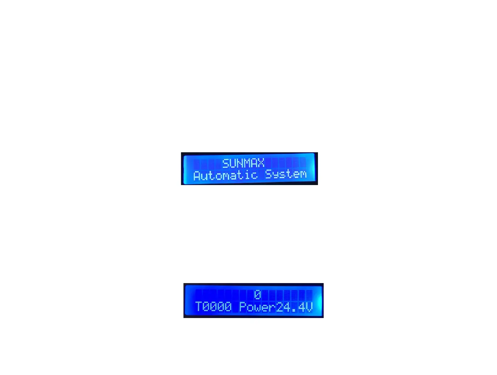 screen. The first line of the startup screen displays "SUNMAX", and the second line displays
