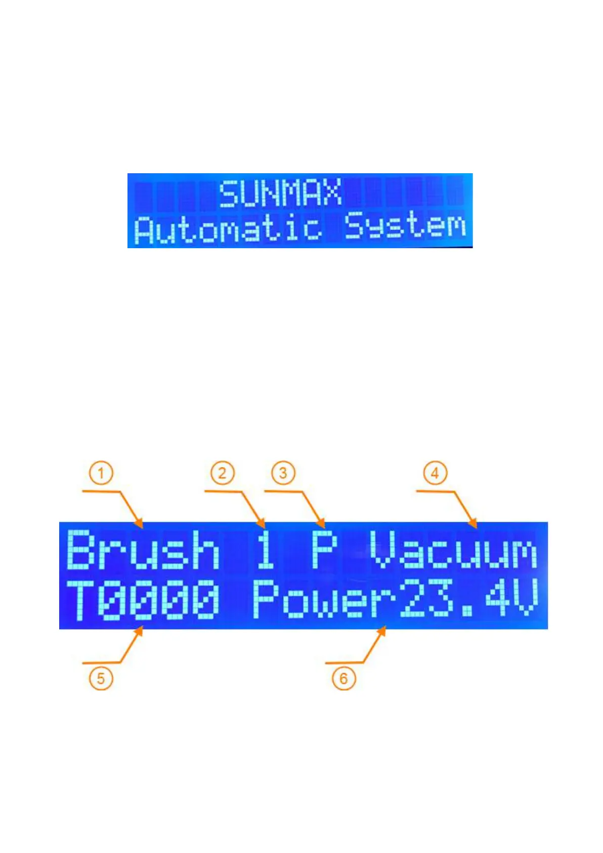 Upon powering on the floor scrubber, the screen displays "SUNMAX" on the first