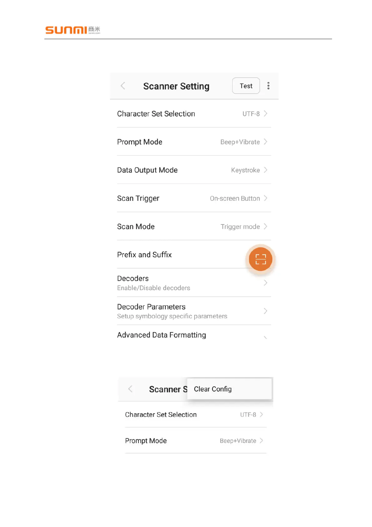 Sunmi L2 - Sunmi Scanner Settings Configuration; Clearing Scanner Configuration