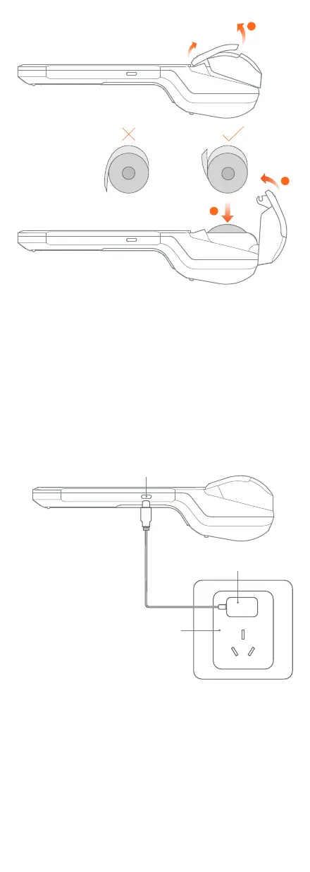 Sunmi V2 - Printing and Charging Instructions; Paper Loading Procedure; Troubleshooting Blank Paper; Recharging and Battery Care