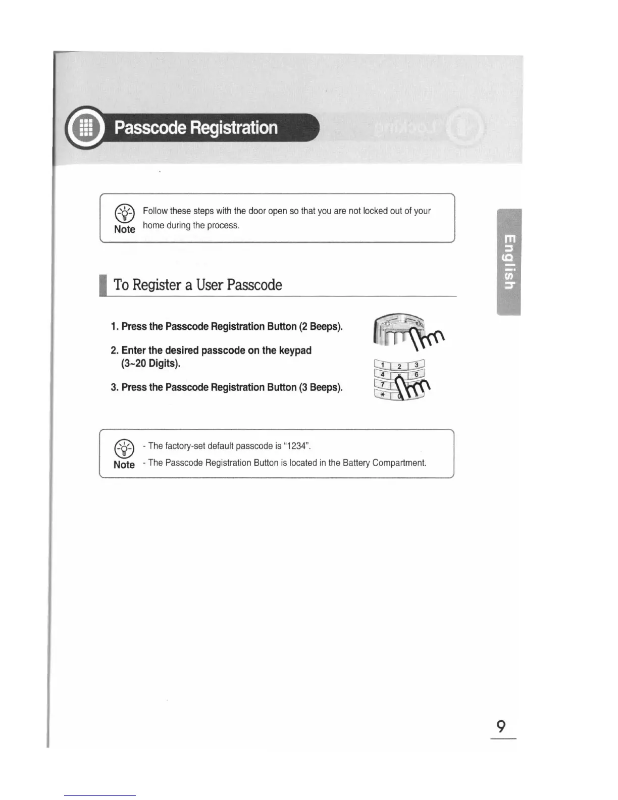 Sunnect AP501 - Passcode Registration; To Register a User Passcode