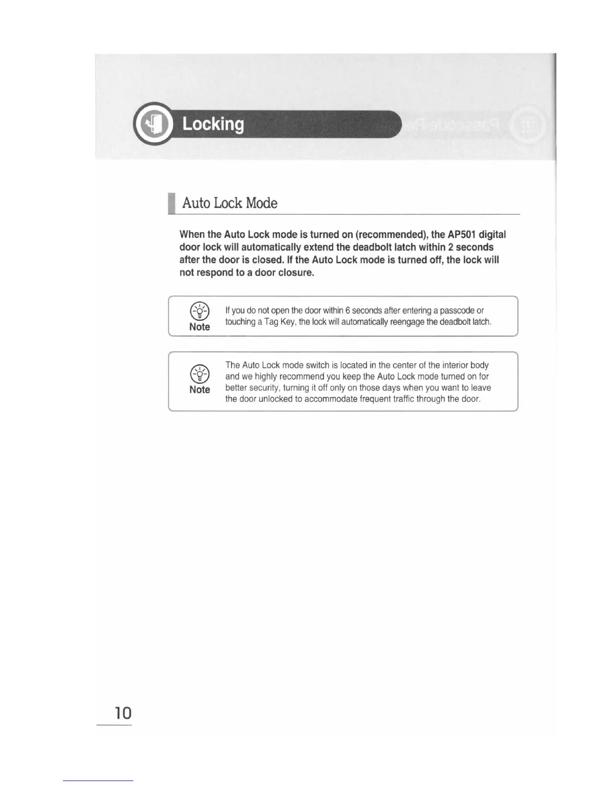 Sunnect AP501 - Locking Operations; Auto Lock Mode