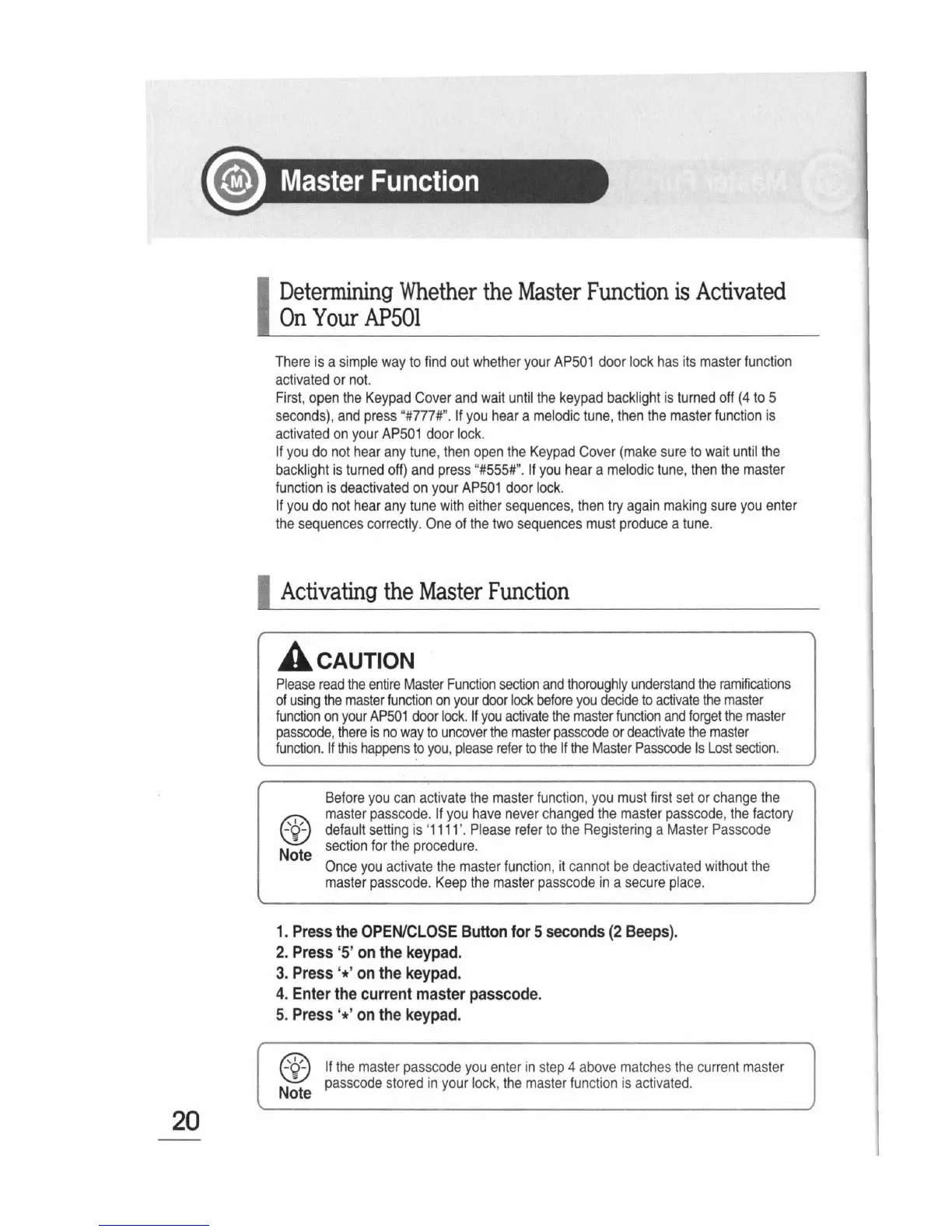 Sunnect AP501 - Activating the Master Function