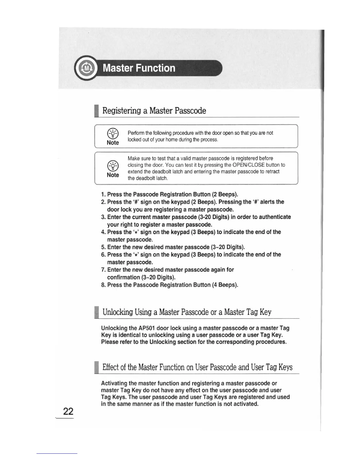 register a master passcode.
