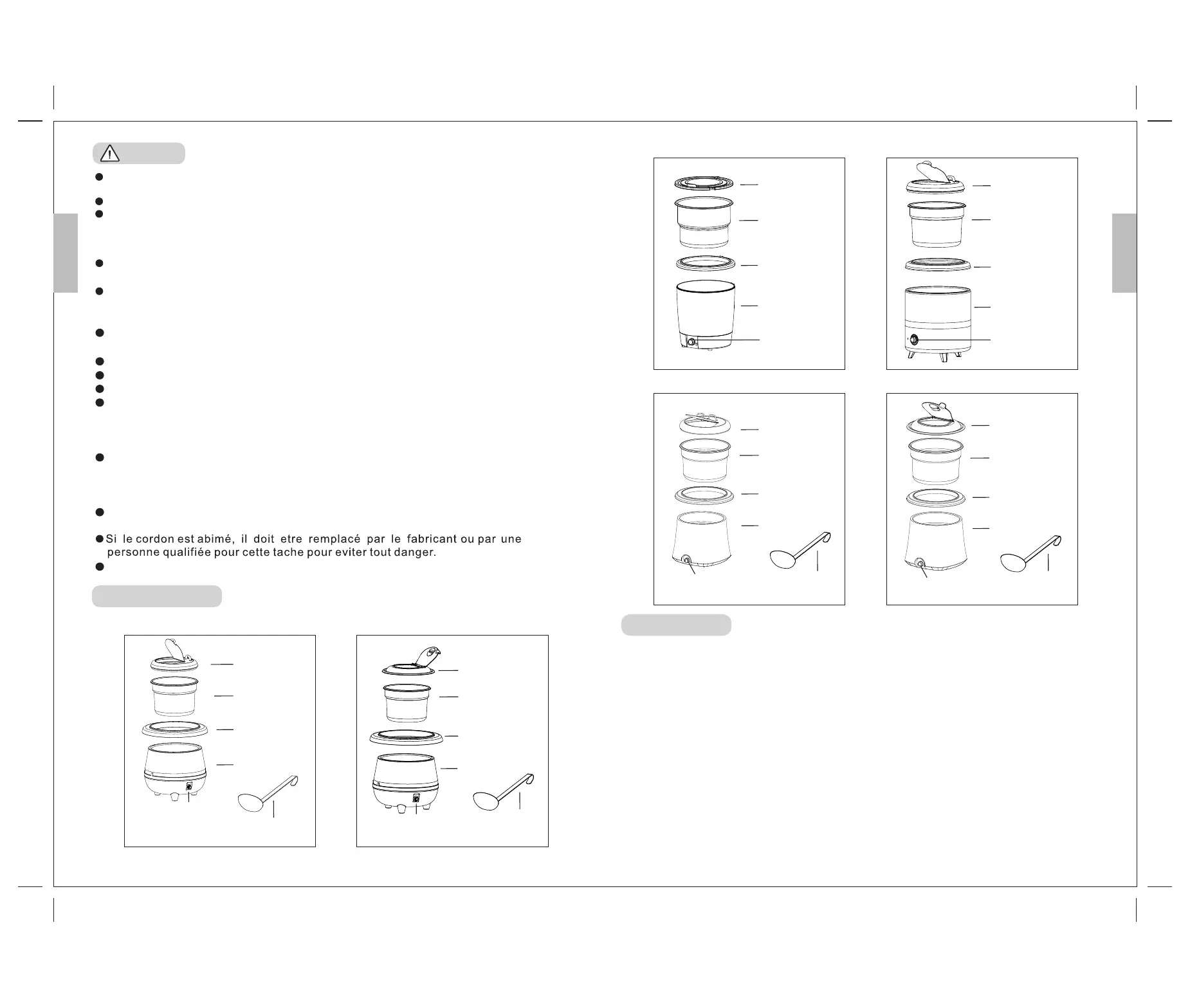 jamais dépasser la ligne indiquée. Pour la série de marmite à soupe E01,E07, l’eau doit