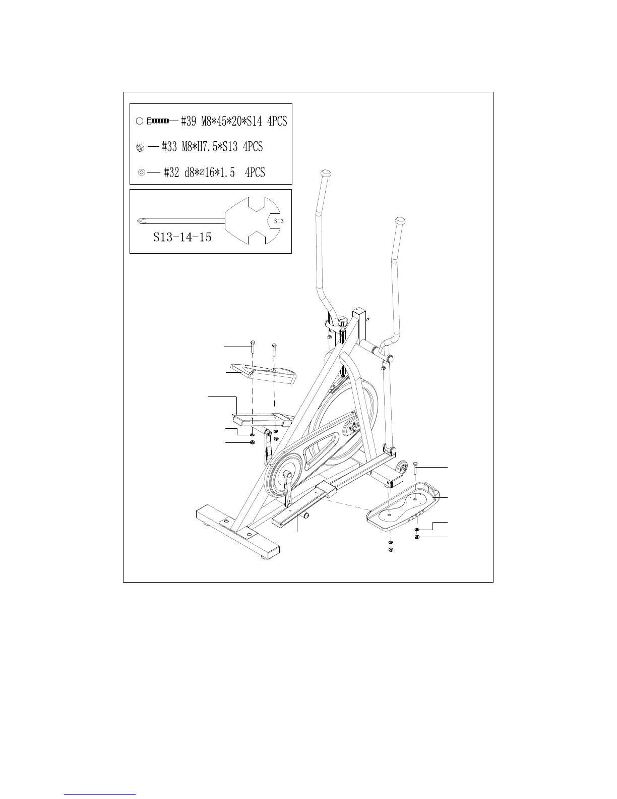 Posts (No. 7 and No. 8) using 4 Bolts (No. 39), 4 Washers (No. 32) and 4 Nuts (No.