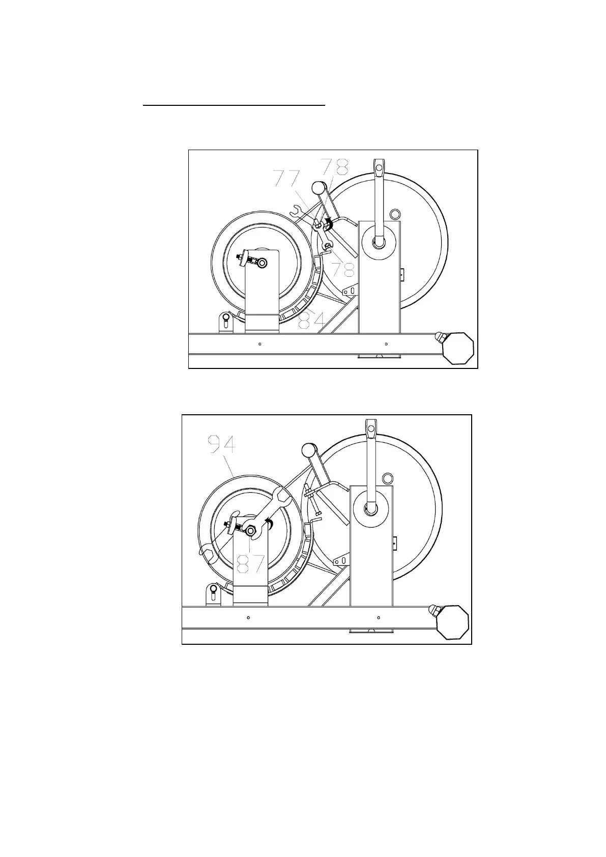 Courroie (N° 65L/R); desserrer les vis du Volant d’Inertie (N° 94) d’environ un demi-tour.
