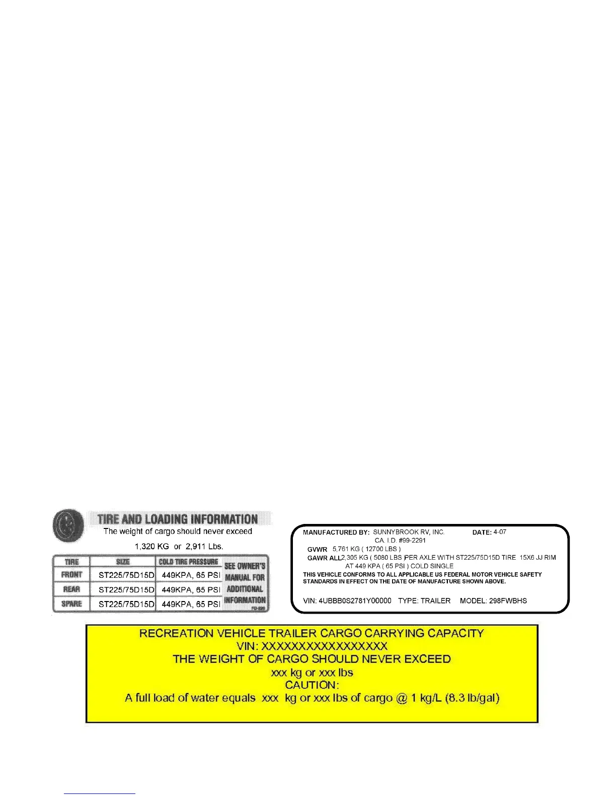Sample Trailer Weight Information Labels
